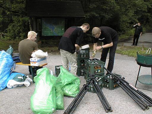 | 01010005.jpg | Erste Getraenkekisten finden sich ein |
